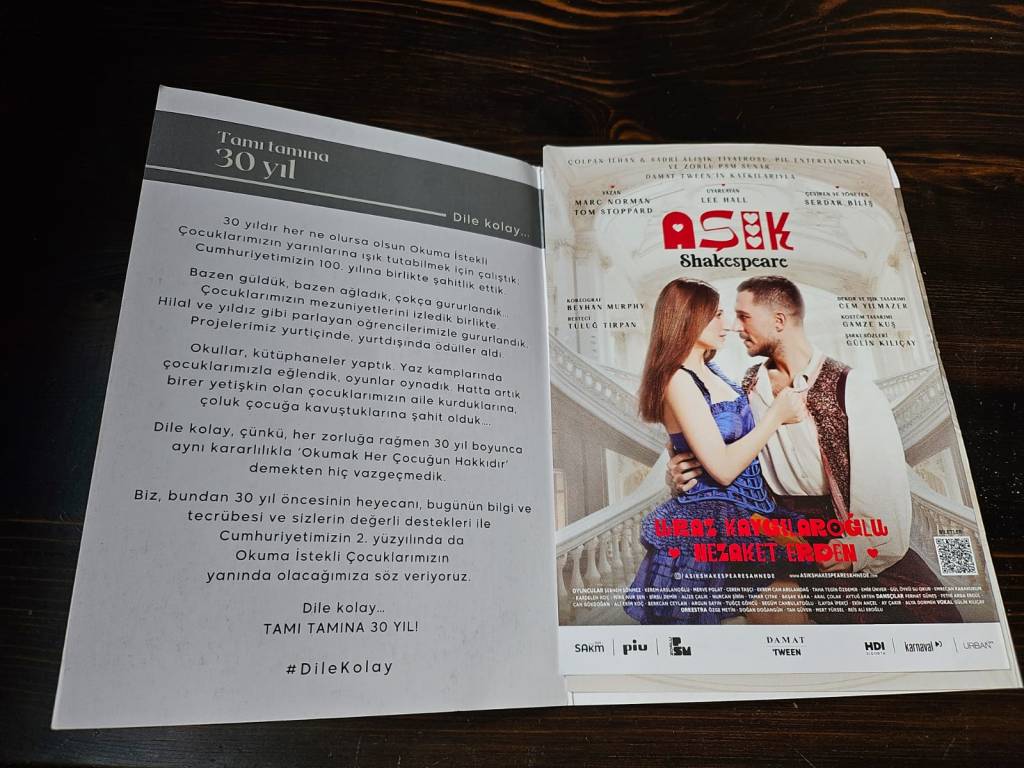 Oyunu izlediğimiz günün ertesi, geçtiğimiz yıl yaşanan deprem felaketinin birinci yıl dönümüne denk geliyordu. Sahnede, Toçev’le yaptıkları işbirliği kapsamında, bu oyun için aldığımız biletlerin tüm gelirinin bölgeye yardım amaçlı bağışlandığını anons ettiler. Çok hoş bir davranştı. Kendilerini tebrik ediyorum.